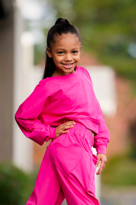 Explore our signature LOVE Collection, where ruffled accents, hidden hearts, and powerful messages come together to create dancewear that moves with purpose. From chic crop tops to versatile shorts and cozy sweatshirts, every piece is designed to empower your dancer while reflecting our values of love and sustainability.